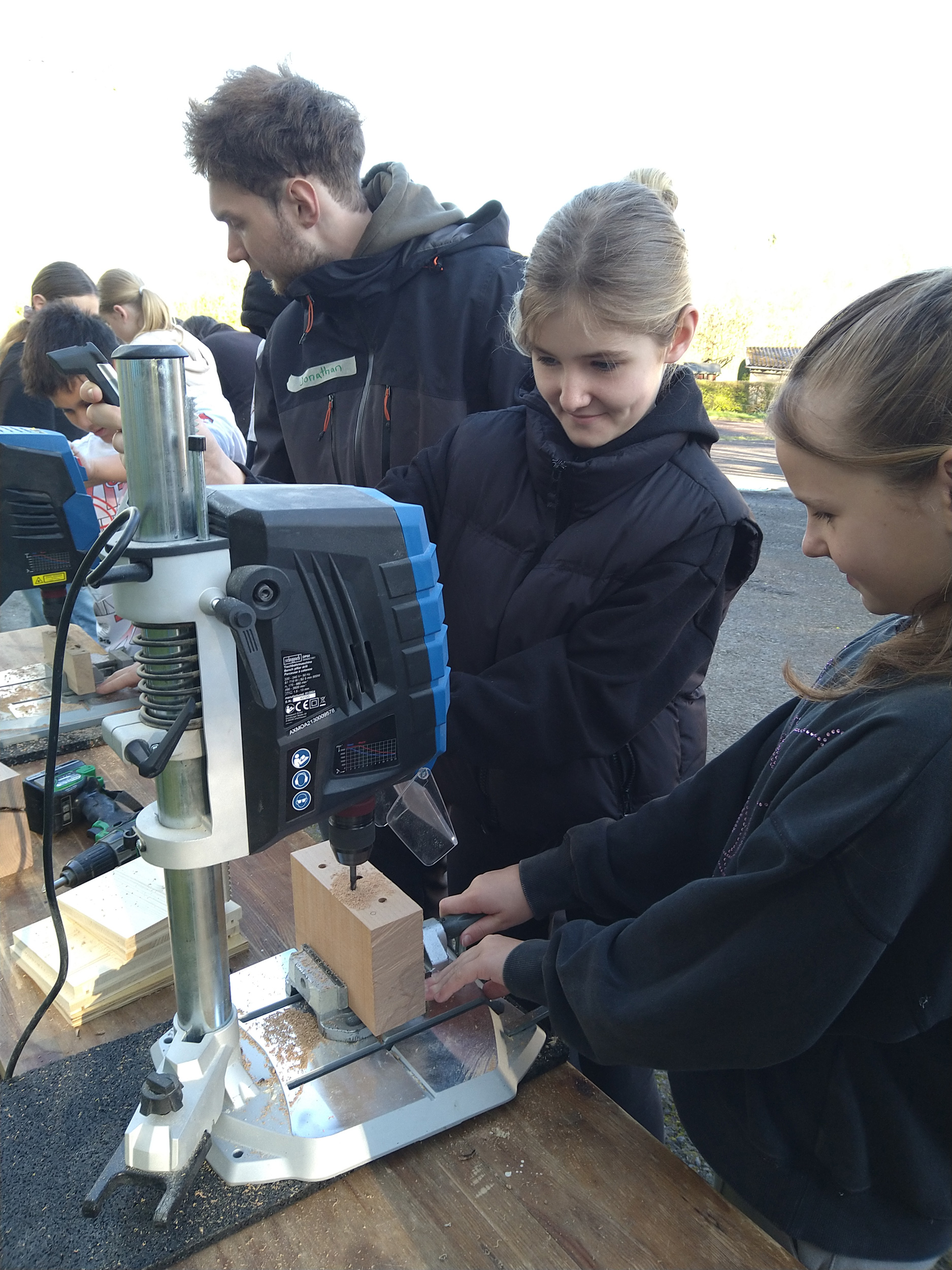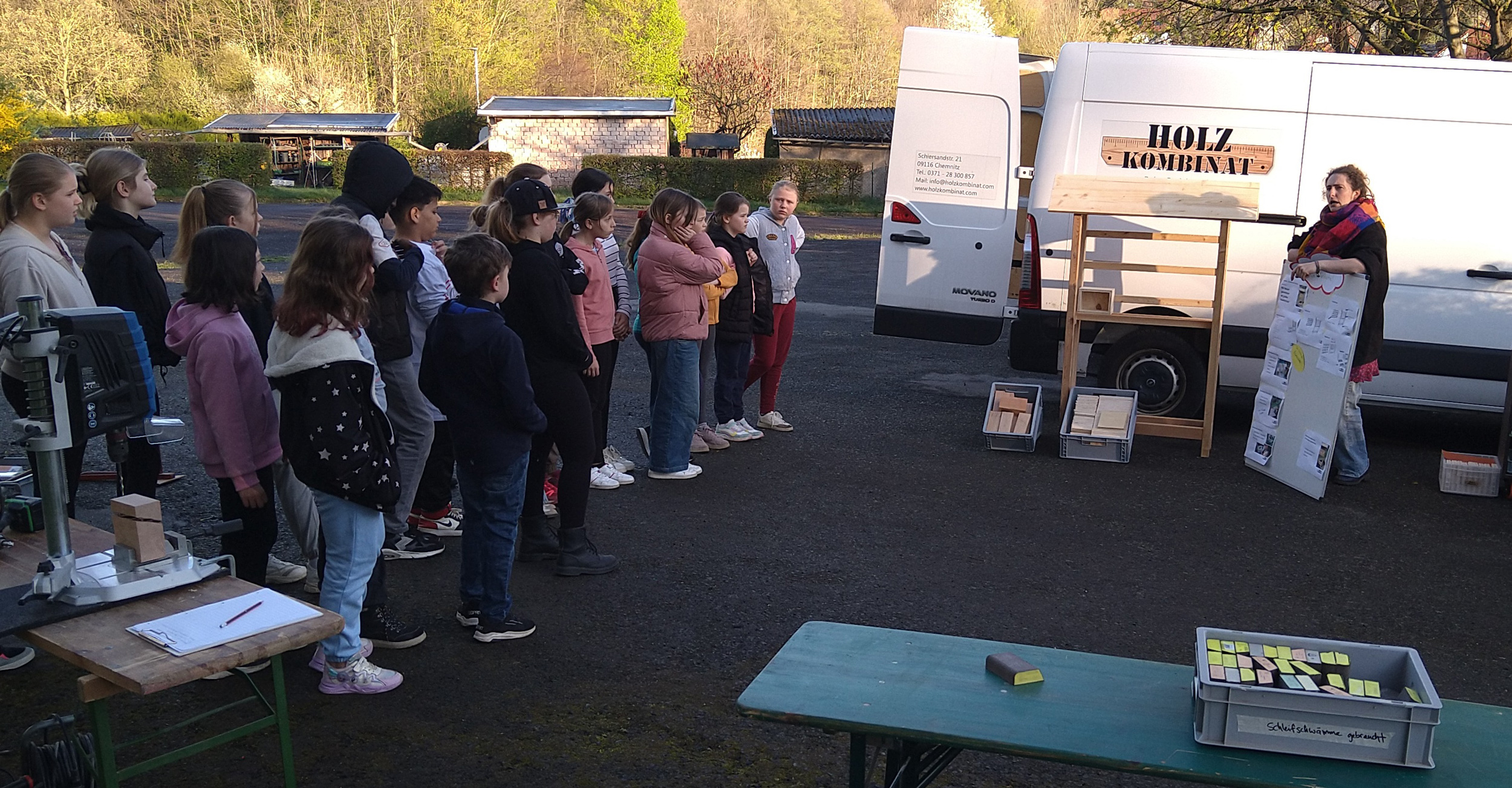 Gemeinsam mit ihrer Klassenlehrerin Frau Pohle und dem Holzkombinat aus Chemnitz tauchten die Kinder in die Welt des Holzhandwerks ein. Nach der Begrüßung wurden die Skizzen des Insektenhotels gezeigt und die verschiedenen Arbeitsschritte erklärt. Die Schüler wurden in kleine Gruppen eingeteilt, die an unterschiedlichen Stationen arbeiteten und so alle Schritte des Bauprozesses hautnah miterlebten.